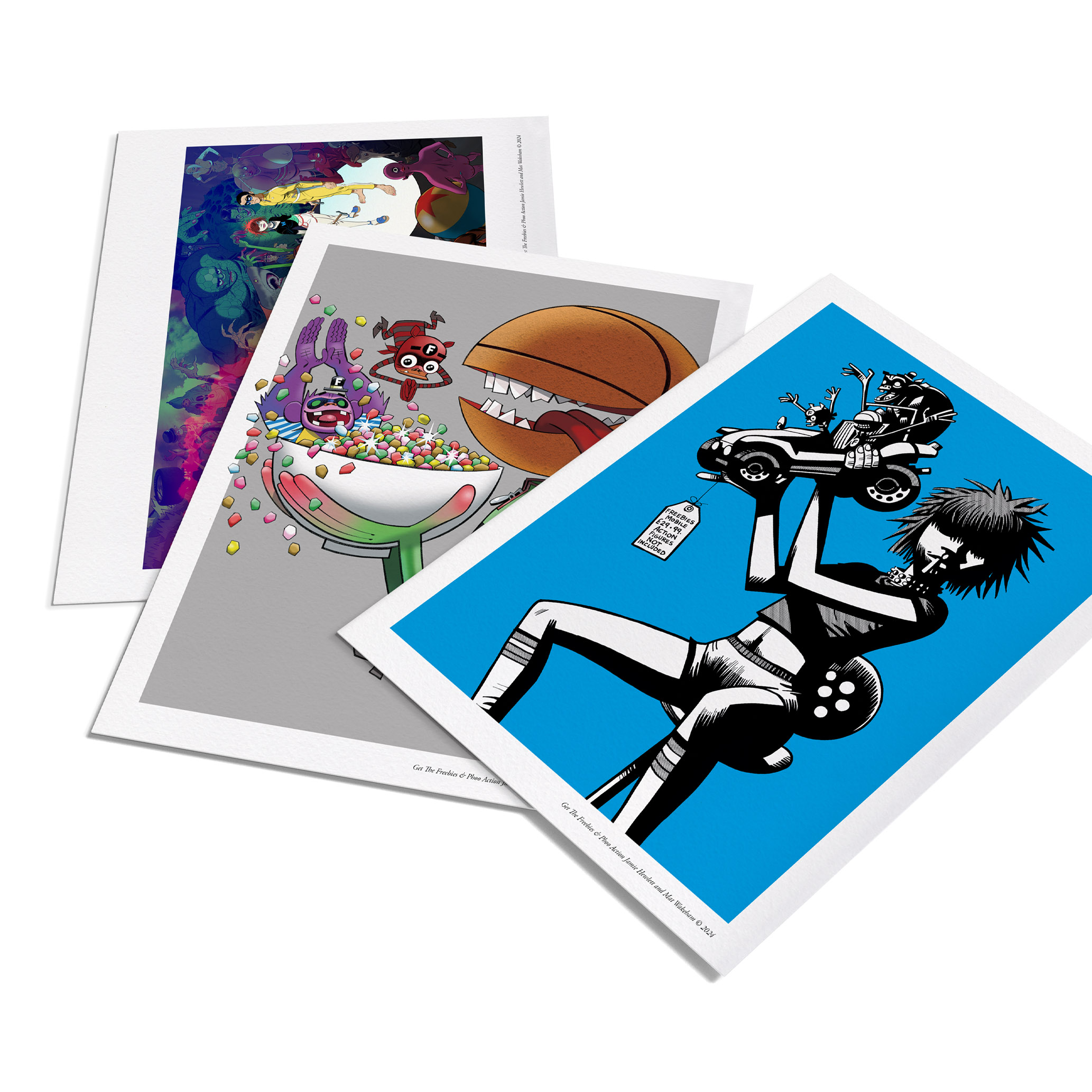 Main paper: 140gsm matt art plus, script pages: 120gsm wood-free, double and single gatefolds, remastered Get the Freebies comics, unseen process art, 70,000-word prose story, scripts, storyboards, behind-the-scenes and complete history of the IP over five chapters, including comics, adaptations and publishing